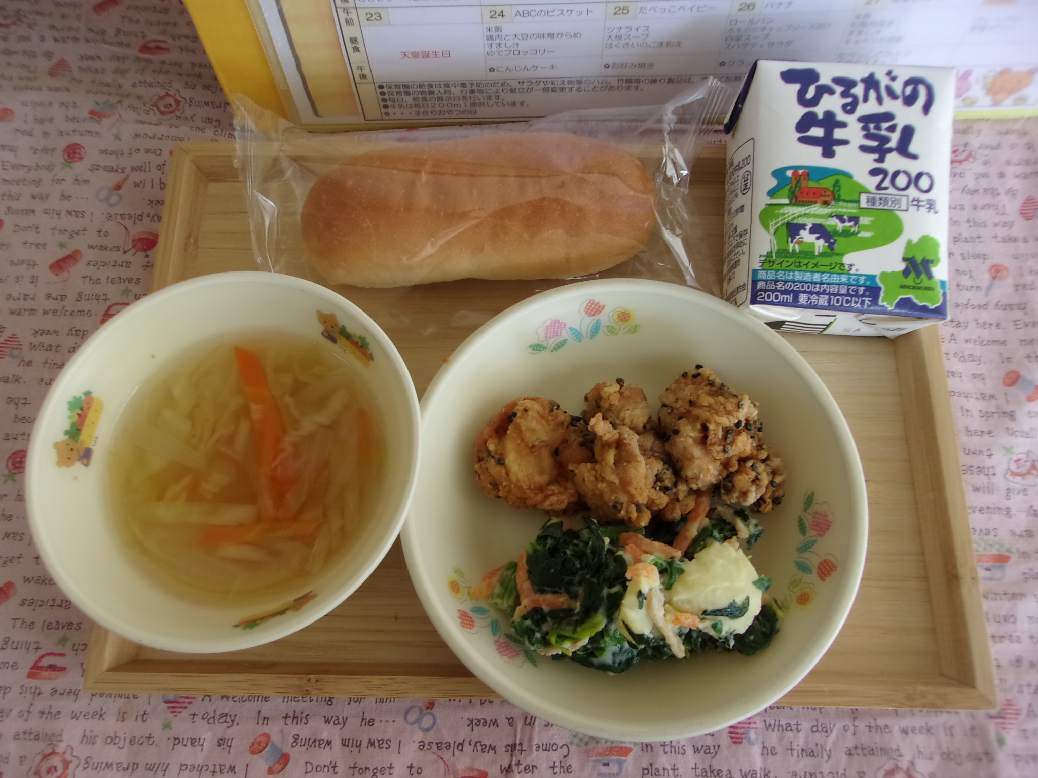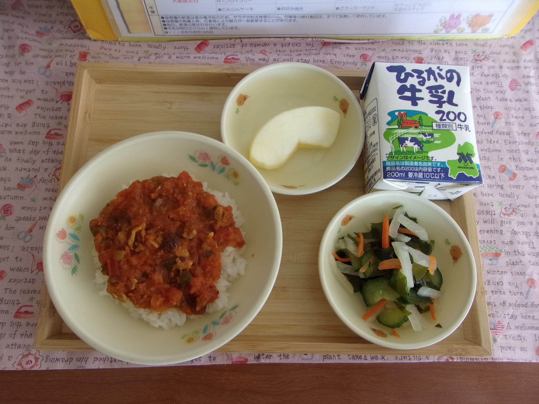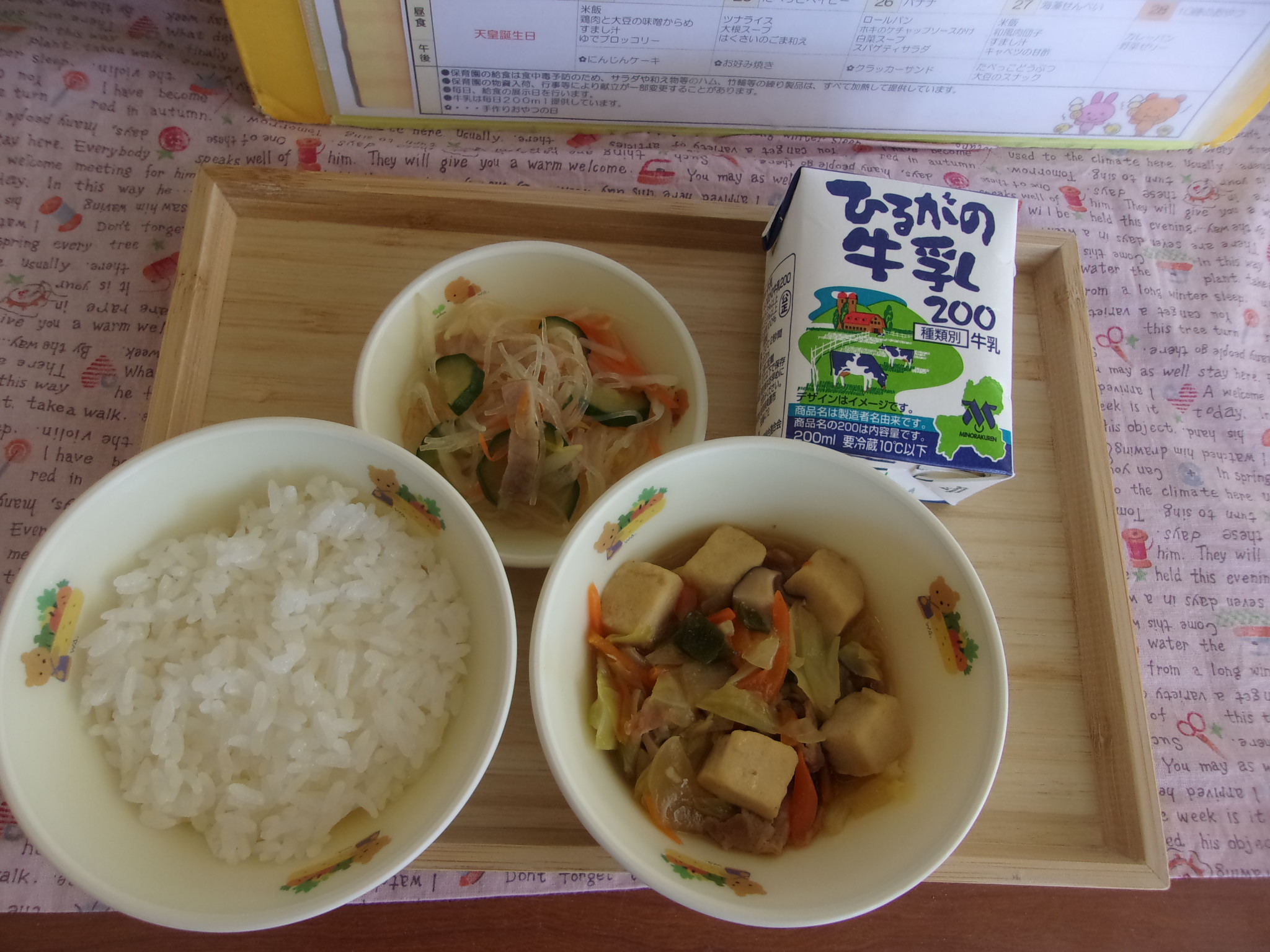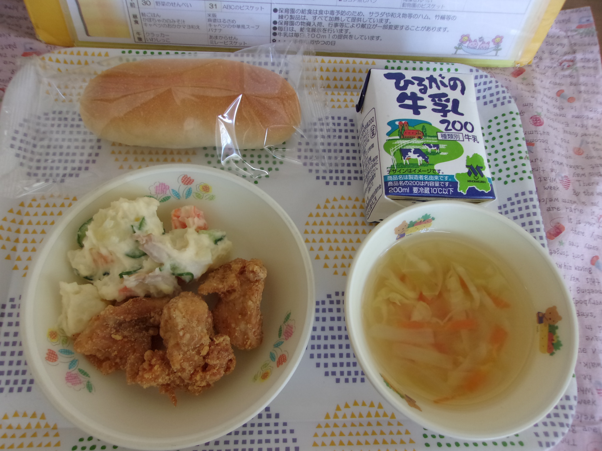 給食室から園での献立のご案内